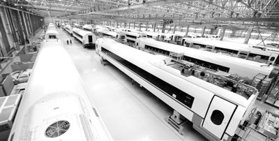 這是中國北車長客股份公司裝配車間內待組裝的用于京滬高鐵線的CRH380BL新一代高速動車組(2011611日攝)。 新華社記者 王昊飛攝
